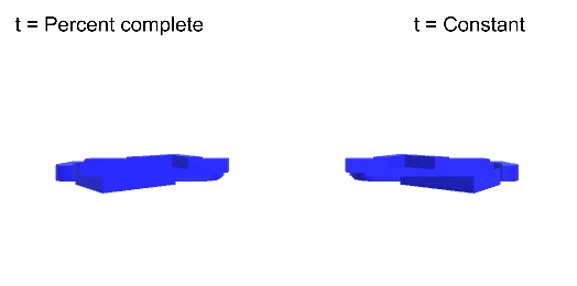 The following is an example of the two different ways of leveraging 't' in Slerp: