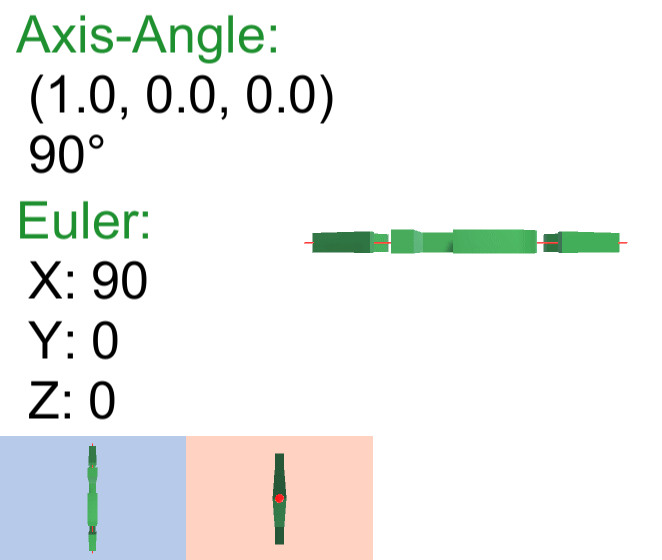 Here is a simple example where we are rotating around the X axis only. When the axis is one of the world axes like this, the angle is equivalent to an Euler angle.